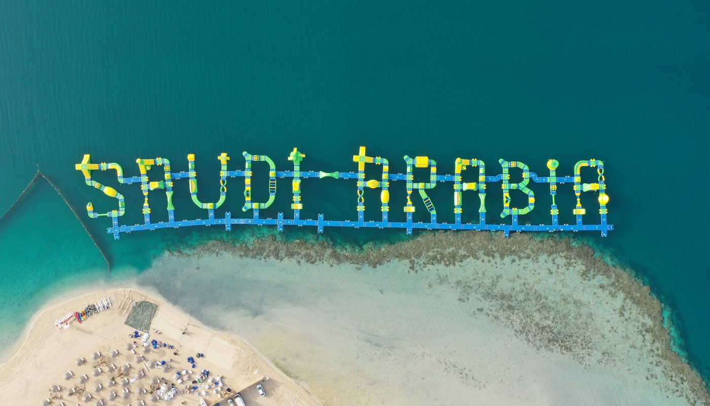 Nach dem GUINNESS WORLD RECORDS©-Titel im Jahr 2019 für den weltweit größten aufblasbaren Wasserpark in Form eines Schriftzuges in Indonesien wurde nun im August ein noch größerer Park, der „Saudi-Arabia“-TAG mit einer Kapazität von 700 Personen am Pure Beach in King Abdullah Economic City, Saudi-Arabien, installiert.