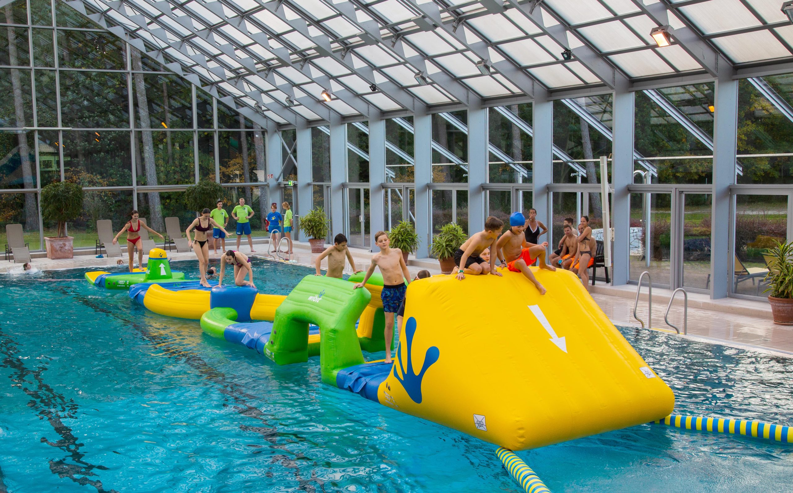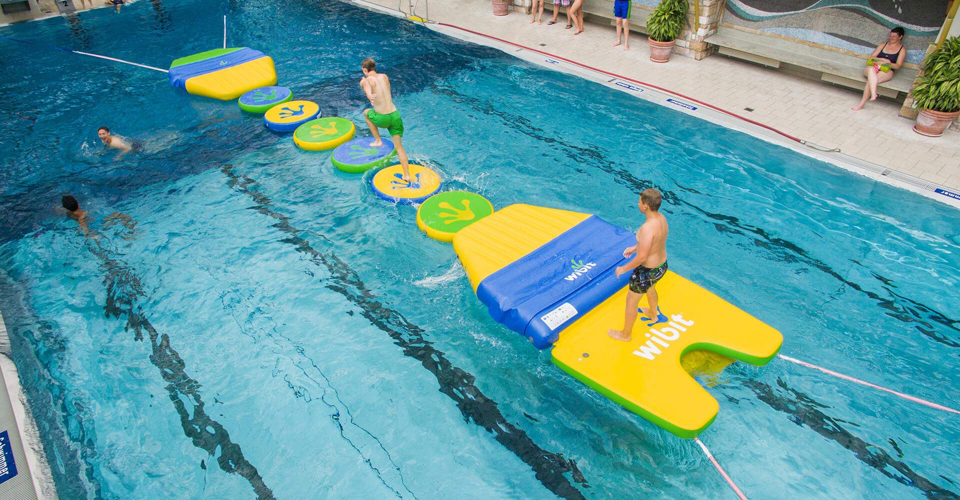 Verleih deinem Hotel- oder Schwimmbaderlebnis neues Leben und steigere deine Besucherzahlen mit Wibit Freispiel, dynamischen Veranstaltungen und Kindergeburtstagen. Unsere aufblasbaren Hindernisbahnen sind einfach aufzubauen und bieten ein spielerisches und gesundes Fitnessprogramm sowohl für Kinder und Jugendliche als auch für Erwachsene.