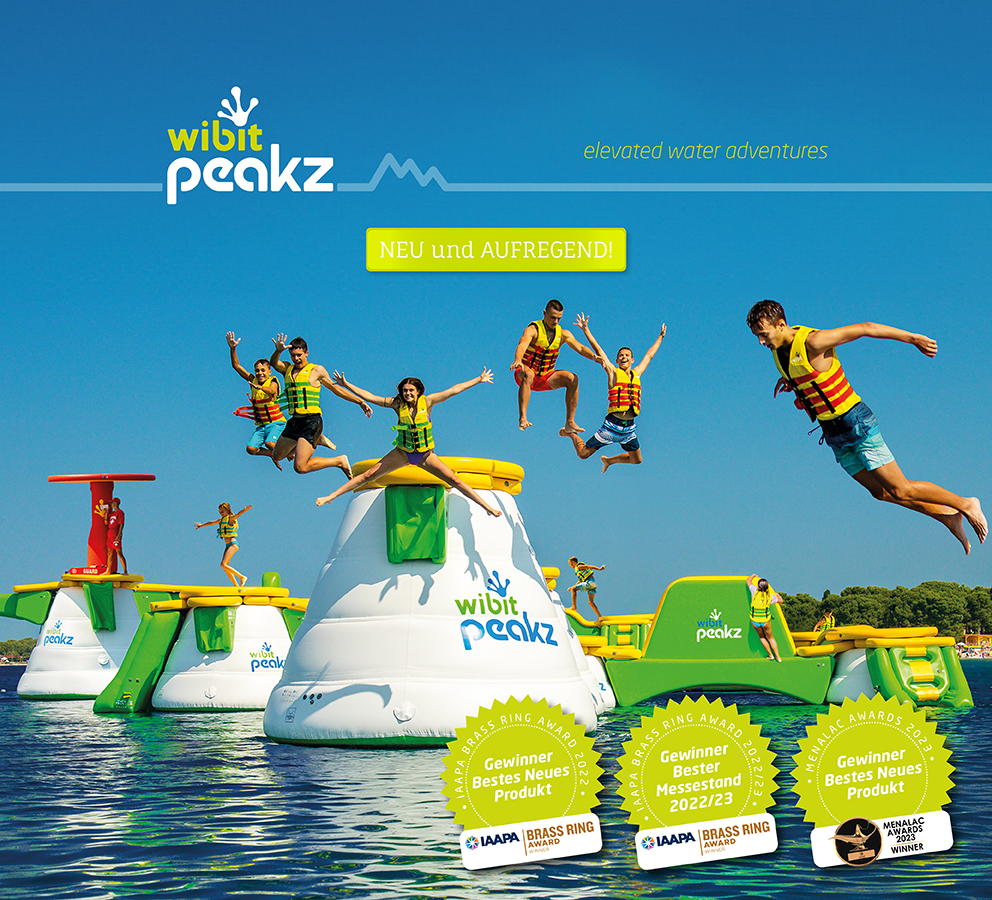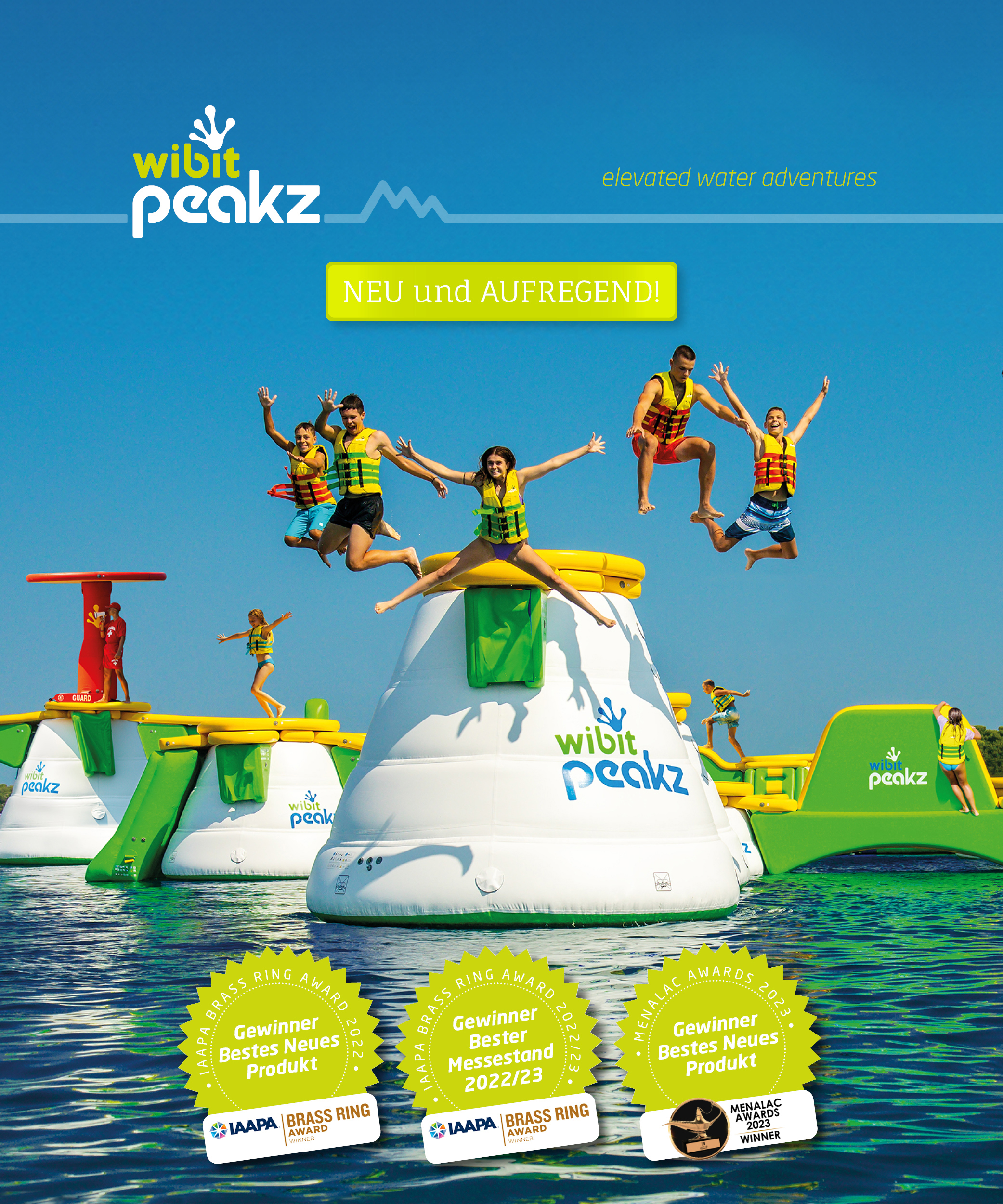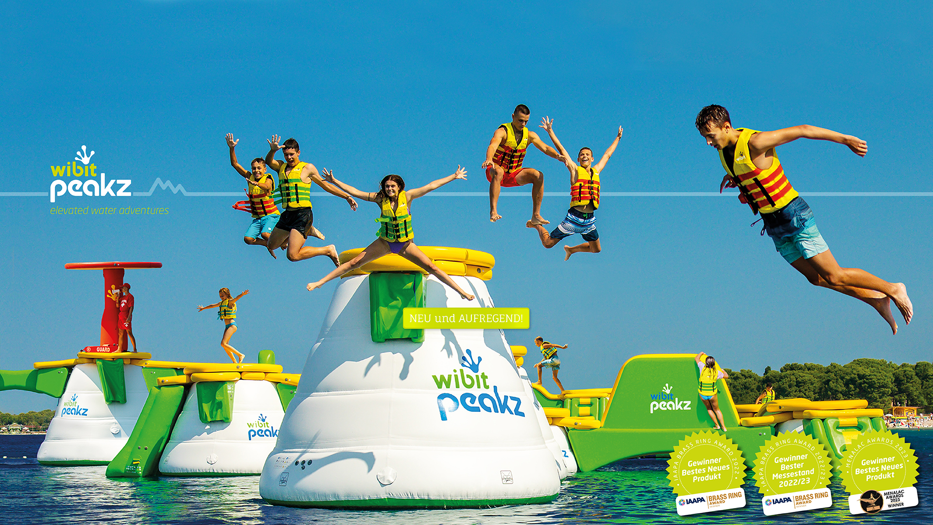 Mit Wibit Peakz (Design & Nutzungspatent angemeldet) erlebst du die absolute Weltneuheit auf dem Wasser. Gleichgewicht, Geschicklichkeit und Geschwindigkeit in luftiger Höhe – all das fördert der innovative schwimmende Kletterpark für seine Besucher. Spaß & Action sind garantiert!