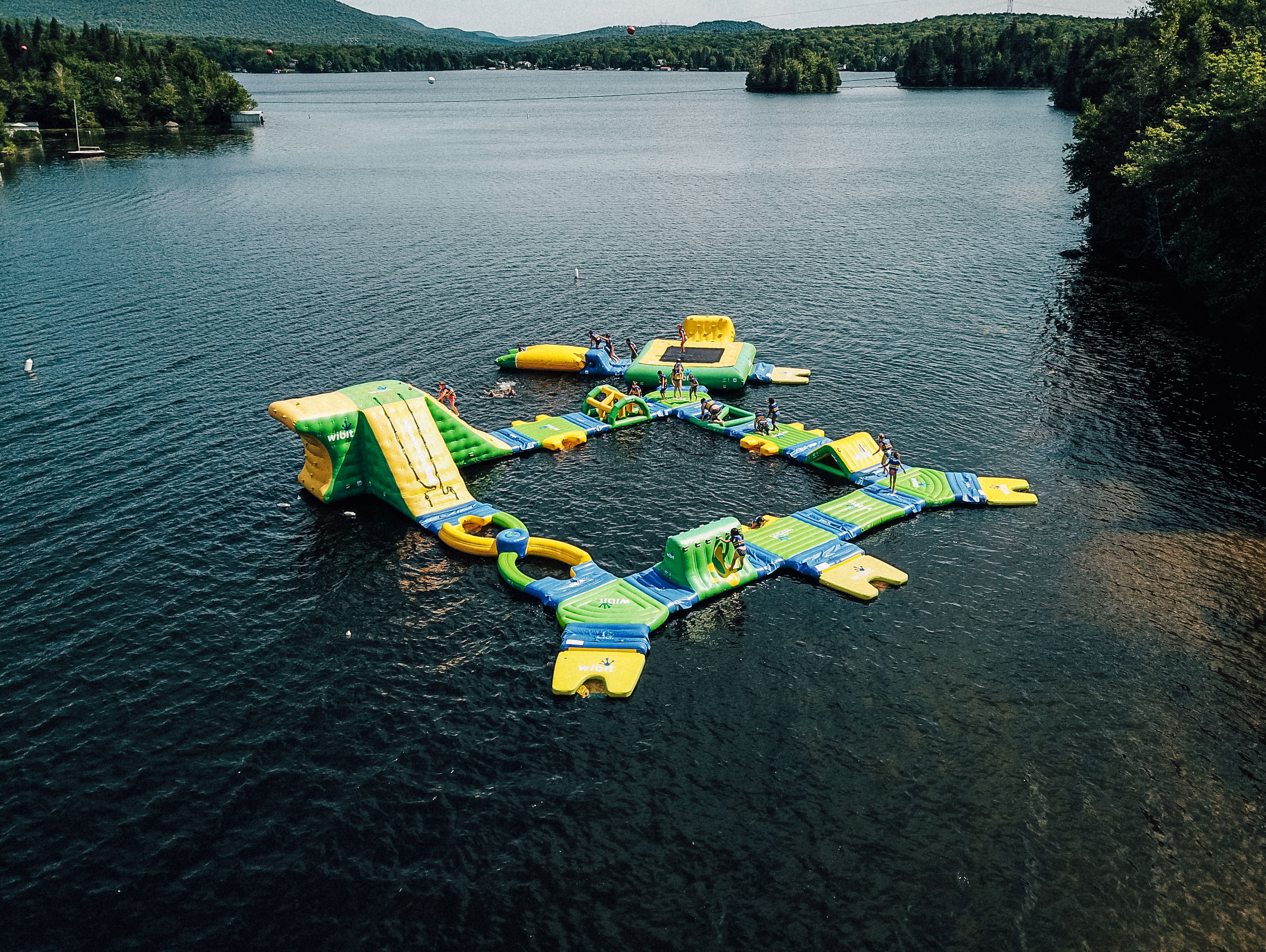 Only 45 minutes from Quebec, Camp Portneuf is a family friendly vacation resort on the shores of Lake Sept- Îles. Focusing on personal development and the experience of group life in a natural environment, the venue offers diverse outdoor activities for all ages. Looking for a new attraction within the lake and encouraging people to go into the water, a Wibit SportsPark was installed in 2017.